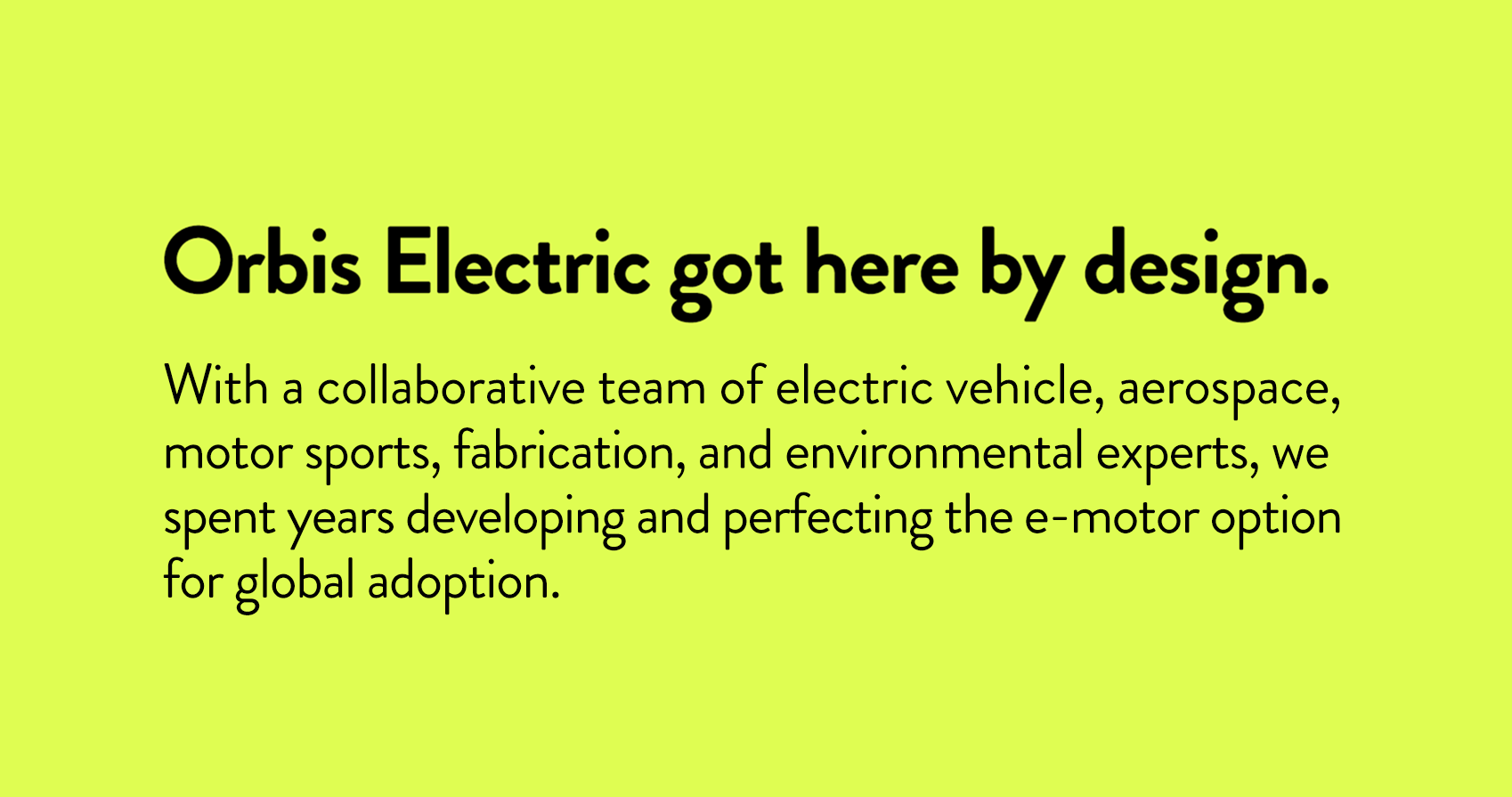 Orbis Electric is the high performance electric motor company, powering the next cycle of e-Mobility. The company’s advanced axial flux motor-generator, HaloDrive, is designed to power anything that moves or to move anything that needs power. HaloDrive utilizes breakthrough technology to deliver a motor that is slimmer, lighter, lower-cost and more powerful than existing electric motors and generators. Based in Santa Rosa, CA, Orbis Electric is led by a team of experts in design innovation, energy efficiency, and real-world solutions.